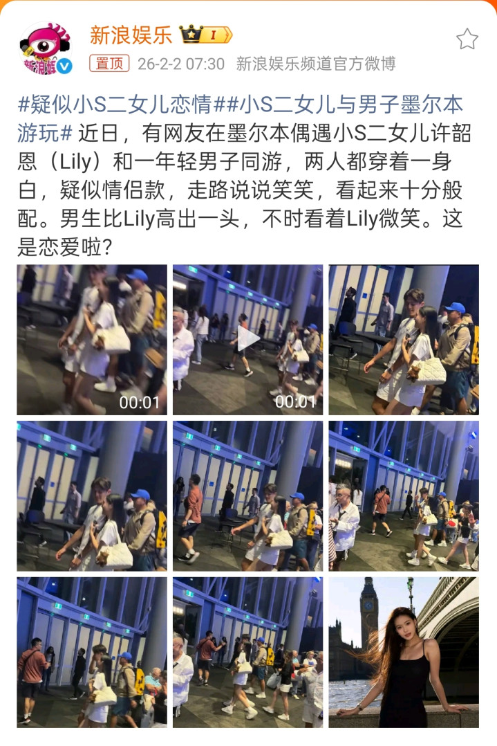 2月2日,今天是大S去世一周年的祭日,前几天S一家和具俊晔就提前放出消息预热了,大S的雕像也将在今天揭开面纱,按道理说今天S一家都应该现身大S的墓地,举行雕像开幕仪式,然而小S的二女儿Lily 却和一名同龄男生现身墨尔本,俩人在墨尔本开启了甜蜜旅游,引起了众多网友的争议。